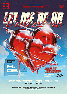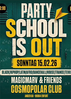 Ladies & Studis aufgepasst: Der Freitag ist da und den Start ins Wochenende feiern wir heute mit dem MÄDELSABEND ❤ Schnapp‘ dir deine Girls, rein in die High Heels und freut Euch am Freitag auf eine unvergessliche, durchtanzte Nacht im exclusiven Partywohnzimmer mitten in Erfurt! Dabei zahlen die LADIES bis 24 Uhr keinen Eintritt, VODKA RED BULL gibt’s als SPECIAL heute für extra schmale 5€! Den i-Punkt setzt das Studi-Special: Studenten zahlen heute ebenfalls bis 24 Uhr keinen Eintritt! SPECIALS: MUSIC: TISCHRESERVIERUNGEN per Mail an reservierung@cosmopolar.com date: Freitag, 20.02.26 |